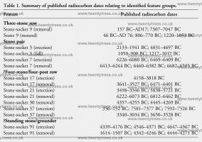 Table 1. Summary of published radiocarbon dates relating to identified feature groups.