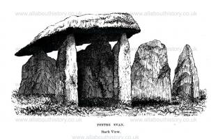 What could have been the object of those who erected this and similar monuments? They could not have been intended for altars. Mr. Fergusson, the author of Rude Stone Monuments of all Countries, however, tells us that "such an exaggerated form as Pentre Evan seems to be a tour de force; but of still more modern date than the monuments at Plas Newydd, Anglesey, or Arthur's Stone." (P. 174.) By a tour de force he means a monument of huge dimensions, raised not only to commemorate some event, but to hand down to posterity evidence of the skill and strength of those who built it.