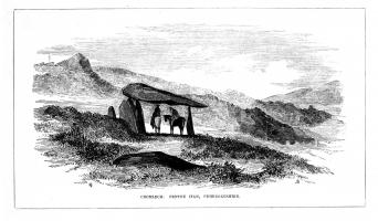 Here the cromlech stands some five or six miles away from the sea; and it probably served as a resting-place to a chieftain and his family dwelling in comparative security, though at what period of the history of Wales it would be vain to conjecture. The adjacent district offers a tempting field of operations for any one interested in the early antiquities of Pembrokeshire; and it would not be surprising if other remains, now not known, were brought to light by sufficient research.