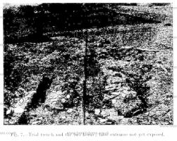 When the work had been completed and the turf replaced, the area between the horns was left at a slightly lower level than the adjacent part of the mound in order to make it clearly ind it by while the complete circuit of the internal wall has been marked out by a line of small stones set in the turf, as it was out of the question to leave it exposed (Fig. 10).