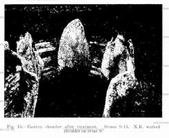 The probability that stone 9 was artificially dressed is increased by the recent discovery that most of the uprights of the chamber and passage of the Bryn Celli Ddu cairn have been extensively worked.