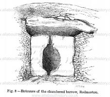 The visitor, descending to examine the mound, will find on the east side that excavations have been made in former times, disclosing the entrance to an interior chamber or cist which once contained the bones or ashes of the great warrior, in whose memory this stupendous mound was erected. We may speculate whether he was one of the heroes who died on this spot fighting against the victorious legion of the Romans led by Paulinus Suetonius; more probably he may have been one of an earlier race.