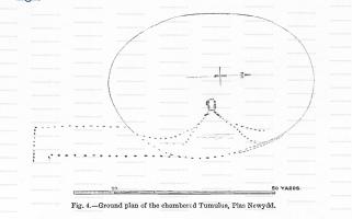 The dimensions of the tumulus are about 150 ft. in length, 105 ft. in width, and 14 to 15 ft. in height (see ground-plan, fig. 4).