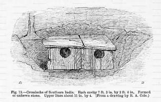 Note 8. This memoir was first given by Col. Taylor in the Transactions of the Bombay Asiatic Society, Jan. 1853. The kistvaen with a circular aperture has been figured in Col. Forbes Leslie's Early Races of Scotland, ii. p. 290; and Lubbock, Prehistoric Times, p. 121, second edit.