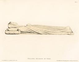 WAS the daughter of John Lord Mohun, of Dunster, in the county of Somerset, who died towards the latter end of the fourteenth century, leaving as his heirs three daughters, Philippa, Elizabeth, the wife of William de Montacute, Earl of Salisbury, (of whom we have already treated,) and Maud, wife of John Lord Strange, of Knockyn, in the county of Salop. Philippa, represented by this effigy, married Edward Plantagenet, son and heir of Edmund of Langley, Duke of York, fifth son of Edward the Third, who succeeded to his father's honours, and was by Richard the Second created Earl of Rutland, of Cork, Duke of Albemarle, or Aumarle, and Constable of England. By this marriage there was no issue, and Edmund Duke of York was slain in the memorable battle of Azincourt, A. D. 1415. Philippa was afterwards espoused to Sir Walter Fitzwalter [Note. There is some confusion here since Walter Fitzwalter, who died in 1386, is understood to have been Philippa's first husband?], Knight, whose arms are impaled with hers in the chapel of St. Nicholas, in the Abbey Church of Westminstera, where she was buried, with this inscription on her tombb.