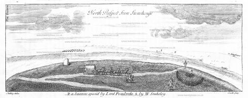 Table VIII. North Prospect from Stonehenge. P. A barrow opened by Lord Pembroke. S. By William Stukeley.