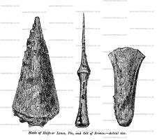 8. In the first, these were at the depth of between three and four feet, mixed with a few ashes, and with fragments of sun-dried pottery, of both the coarse and finer sorts. There were also two pins of ivory, one of them tinged with bronze.