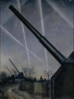 1940. CRW aka Christopher Nevinson (age 50). "Anti-aircraft Defences" depicting anti-aircraft batteries and London Blitz spotlights.