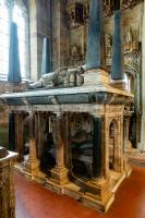 After 1451. St Bartholemew's Church, Tong [Map]. The Stanley Monument to, on top, [his father] Thomas Stanley and [his mother] Margaret Vernon, below, their son Edward Stanley. The monument was originally beside the high altar.