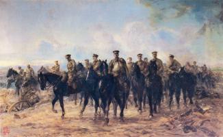 1929. Elizabeth Thompson Lady Butler (age 82). "A Detachment of Cavalry in Flanders".