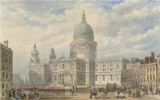 Before 1875. George Belton Moore (age 68). "Marching across the square, St Paul's Cathedral [Map], London".