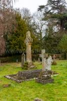 Graves of George Frederick Bodley, flat, next to the large cross, and Reverend Frederick Andrews in the churchyard of St James' Church, Kinnersley [Map].