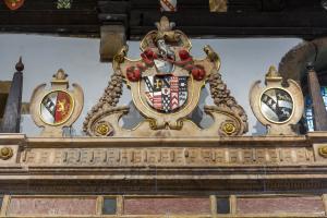After 1622. Monument to George Savile 1st Baronet (age 72) at Church of St Michael and All Angels, Thornhill [Map]. Possibly sculpted by Maximilian Colt (age 47).
