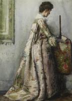 1885. Henry Scott Tuke (age 26). "The silk gown", portrait of Maria Tuke Sainsbury.
