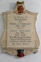 After 1936. All Saints Church, Maiden Bradley [Map]. Monument to [her former husband] Algernon St Maur 15th Duke of Somerset and Susan Margaret Richards Mackinnon Duchess Somerset (deceased).