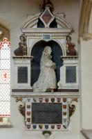 On 3rd June 1602 Elizabeth Seymour (age 52) died. She was buried at All Saints Church, Norton [Map] on 6th June 1603. Painted alabaster Elizabethan Period monument with recumbent praying effigy in coffered arch flanked by black marble Corinthian Columns and outer obelisks and topped by armorial panels. The monument also to Dudley Knightley (deceased).