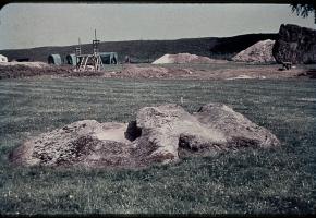 1938-39. General view before restoration of Stone 102 [Map] in the Southern Circle in the henge at Avebury.