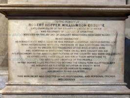 On 13th January 1835 Robert Hopper Williamson, Chancellor of the County Palatine of Durham and Recorder of Newwcastle, died. Monument at the Cathedral Church St Nicholas, Newcastle upon Tyne [Map] commissioned by "professional and personal" friends sculpted by D. Dunbar.