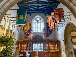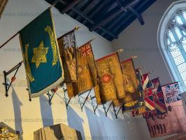 The colours of various regiments at the entrance to the Cathedral Church St Nicholas, Newcastle upon Tyne [Map].