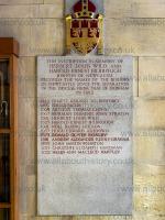 The inscription on the tablet is as follows "David Oliphant killed at Peking July 5 1900 Aged 24 years. The Queen heard with admiration and pride of the manner in which Mr David Oliphant fought side by side with the marines in the defence of the Legation during the four eventful weeks and how he sacrificed his life in the defence of others.' Extract from a letter sent by the Queen to his father." At the bottom of the plate are the arms of the school and the words "A student at the College of Science in this city 1894-7."