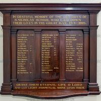 After 1918. Memorial at the Cathedral Church St Nicholas, Newcastle upon Tyne [Map] to the "Old Boys of St Nicholas' School who laid down the lives".