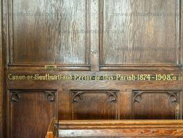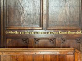Memorial to George Edward Mason, Rector of the Church of St Lawrence, Whitwell [Map] 1874-1908, Conon of Southwell Minster [Map] 1888-1908, Principal of St Bede's College, Umtata Kaffraria, 1908-1919. Died at Rondebosch near Cape Town, 30th March 1928.