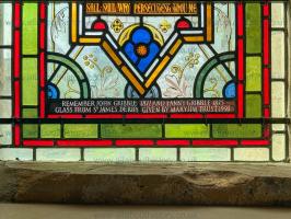 Gribble Memorial Window at the Church of St Lawrence, Whitwell [Map]. The window was originally at the church of St James, Derby, and given to Whitwell by the Maryam Trust in 1993.