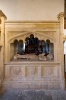 After 1630. Church of St Leonard, Rodney Stoke [Map]. Monument to Anne Lake Baroness Ros of Helmsley (deceased). Finely crafted in Watchet Alabaster. Stuart Hooded Monument.