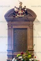 After 22nd January 1669. Church of the Virgin Mary, Stoneleigh [Map]. Monument to Alice Leigh 1st Duchess Dudley (deceased) and her daughter. A large elaborate memorial in black and white marble erected in 1668. Has two recumbent female figures under a canopy supported on eight Ionic columns and on either side an angel with trumpet holding back curtains. Possibly sculpted by William Wright of Charing Cross.