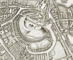1675. Map of Oxford from Oxonia Illustrata including Oxford Castle