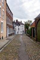 Around 1750. Arcaded 18th century building opposite the Priory/College Gateway that defines the boundary between the North and South Baileys.