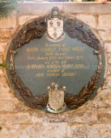 On 5th April 1713 Richard Welby (age 55) died. Monument at St Andrew's Church, Denton [Map]. Sculpted by Thomas Green of Camberwell (age 54). The fully wigged standing life sized figure of the deceased stands in an arched surround flanked by fluted Pilasters with acanthus scrolls and broken segmental pediment contaning a cherub and putti leaning down from heaven holding a metal coronet, surmounted by an achievement. Beneath is he inscription panel and to either side putti holding memento mori, and mourning, one with tears.