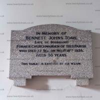After 18th November 1936. St Cuby's Church, Duloe [Map]. Memorial to Bennett John Toms, Churchwarden, died at sea.