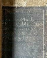 St Cuthbert's Church, Doveridge [Map]. Grave of Samuelk Olfdeild died 12th October 1722.