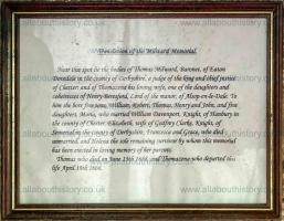 On 24th June 1640 William Davenport (age 36) died. Monument at St Cuthbert's Church, Doveridge [Map] to William and his wife Mary Milward.