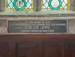 St Cuthbert's Church, Doveridge [Map]. Memorial window to Harry Lewis, placed vby his parents Thomas Henry and Eveline 1954.