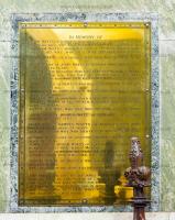 Monument at St James' Church, Didsbury [Map] with Nicholas top centre in the robes of the Lord Mayor of London, Rowland Mosley (age 54) bottom left, Nicholas's sons Edward and Edward Mosley, bottom centre, and Nicholas' wife Margery Whitbroke.