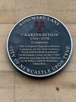 In the 1730s composer Charles Avison was appointed Organist at St John the Baptist's Church, Newcastle upon Tyne [Map]. At the time he was living on Rosemary Lane.