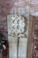St Leonard's Church, Ribbesford [Map]. Herefordshire School of Carving tympanum. Archer aiming at what appears to be a bird with dog beneath. The description 'bird' somewhat difficult. Others call it a 'fishlike monster'. The capitals are carved with large bird pecking small bird, intertwined knots, and snakes.