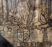 In or after 1485. St Mary's Church, Rolleston on Dove [Map]. Grave slab of John de Rolleston, died 1485, and his wife Margaret Agard of Foston.