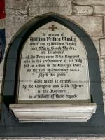 On 18th November 1863 Lieutenant William Feilden Mosley (age 25) was killed in action at the Umbelya Pass during the campaign against the 'fanatics' at Malka, a colony of 'malcontents or bigoted muslims' in the Yusufzai country. Memorial at St Mary's Church, Rolleston on Dove [Map].