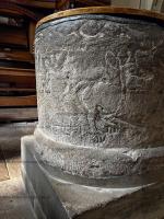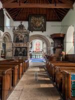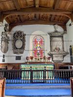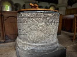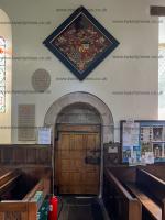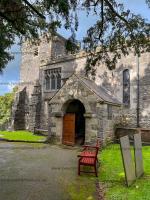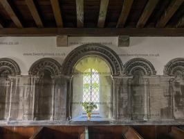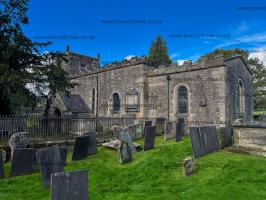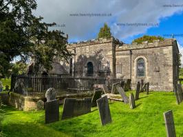 St Mary's Church, Tissington [Map]. The church dates from the 12th century, and the chancel and south porch still date from this time. The doorway has a Norman tympanum with two standing sculpted figures. The church was restored in 1854 when a new aisle was added on the north side.