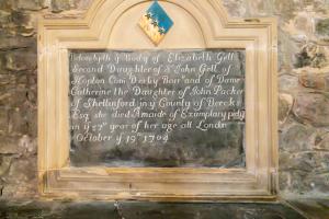 On 19th October 1704 Elizabeth Gell died. St Mary's Church, Wirksworth [Map]. Monument to Elizabeth Gell.