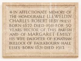 1911. Memorial to Llewellyn Charles Robert Irby at St Nicholas Church, Whiston [Map].