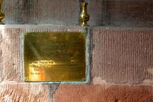 8th August 1999. St Oswald's Church, Brereton [Map]. Memorial to William Brereton 2nd Baron Brereton. Bellringer and Donor of three bells in honour of his marriage to Elizabeth Goring Baroness Brereton. A special event took place at St Oswald's.Church, Brereton on 8th August 1999: the dedication of a plaque to the memory of William, 2nd Lord Brereton, founding member and first Master in 1637 of one of the oldest English change ringing societies, the Ancient Society of College Youths, which still flourishes nationally and internationally from its base in London.