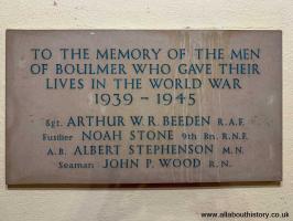St Peter and St Paul's Church, Longhoughton [Map]. Memorial to those of Boulmer who gave their lives in the World War 1939-1945.