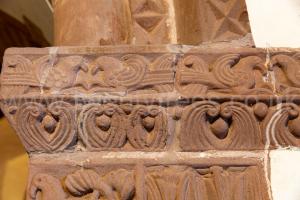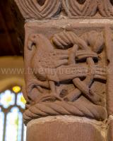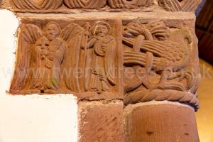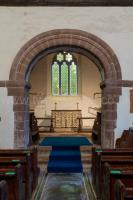 St Peter's Church, Rowlestone [Map]. Chancel arch with fine carvings.