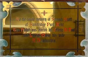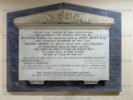 Memorial at St Werburgh's Church, Hanbury [Map] to Susanna Maria, died 17th March 1859, aged 57, at Coton Hall, Staffordshire [Map]. Wife of John Bott, daughter of Major Arden of Longcroft Hall, Staffordshire. She is buried in the chuchyard.