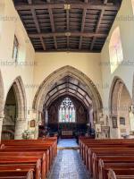 Interior of St Werburgh's Church, Hanbury [Map] looking towards the chancel. The roof constructed in 1686.