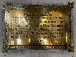 The windows in the North wall at St Werburgh's Church, Hanbury [Map] 'were placed there in affectionate rememberance of Joph Richardson and Eliza Richardson by their three children Morris, Anne and John Henry in 1883'.